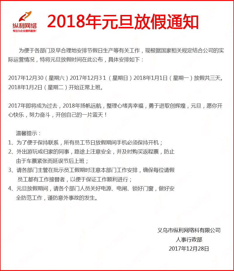 特將元旦放假時(shí)間在此公布,具體安排如下: