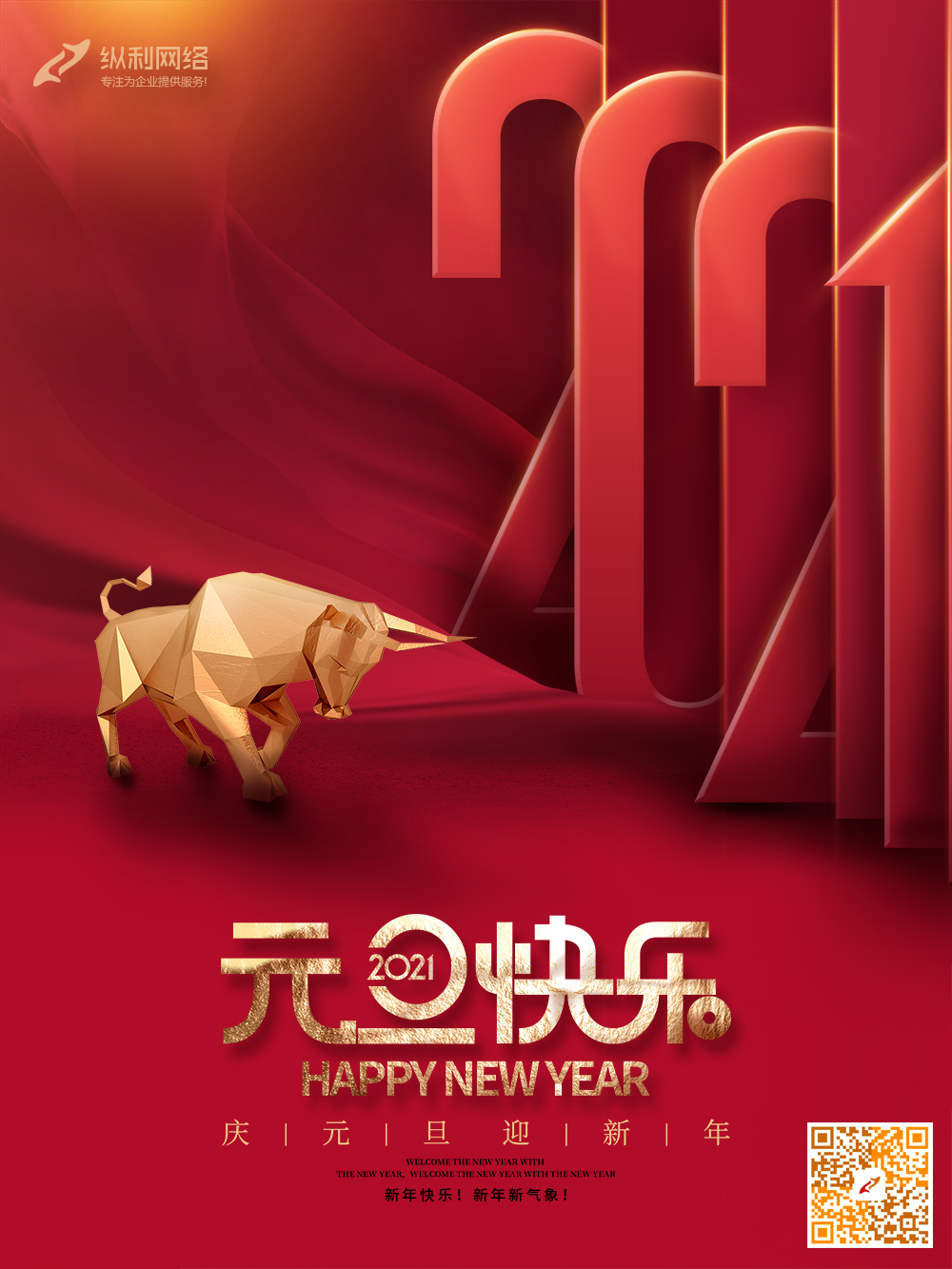 縱利網(wǎng)絡(luò)全體員工恭祝新老客戶2021元旦快樂,Happy New(牛) Year。???