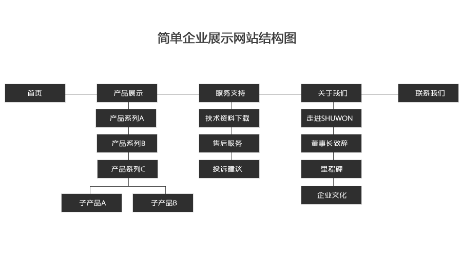 一個(gè)簡(jiǎn)單的企業(yè)展示網(wǎng)站地圖(網(wǎng)站欄目安排)如下: