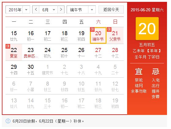 一、端午節(jié)放假期間為:6月20日——6月22日